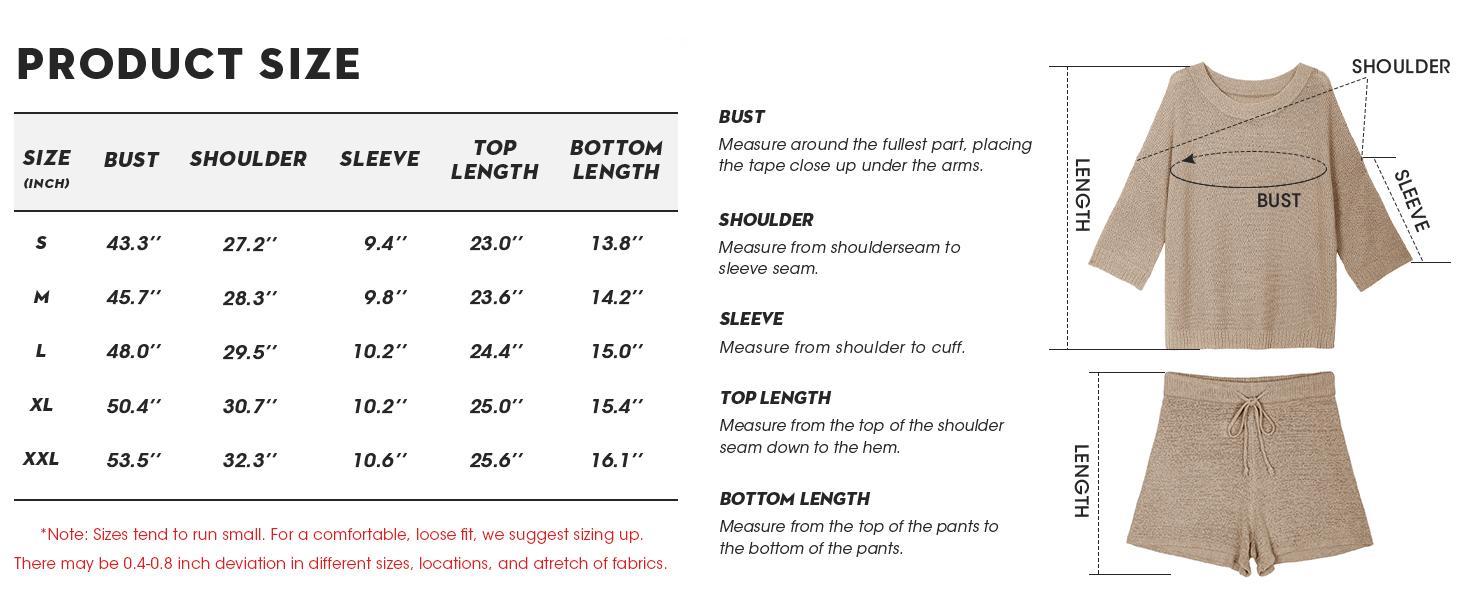 Casual Look: Basic crewneck, half sleeve, two piece, drawstring waist shorts, stretchy loose knit, off the shoulder, oversized style. Soft pajama sweater suits for women and girls. Perfect outfit for leisure time.