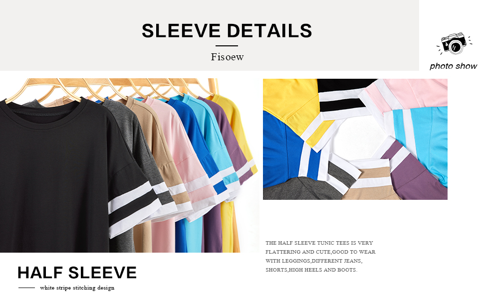The half sleeve tunic tees is very flattering and cute, good to wear with leggings, different jeans, shorts, high heels and boots