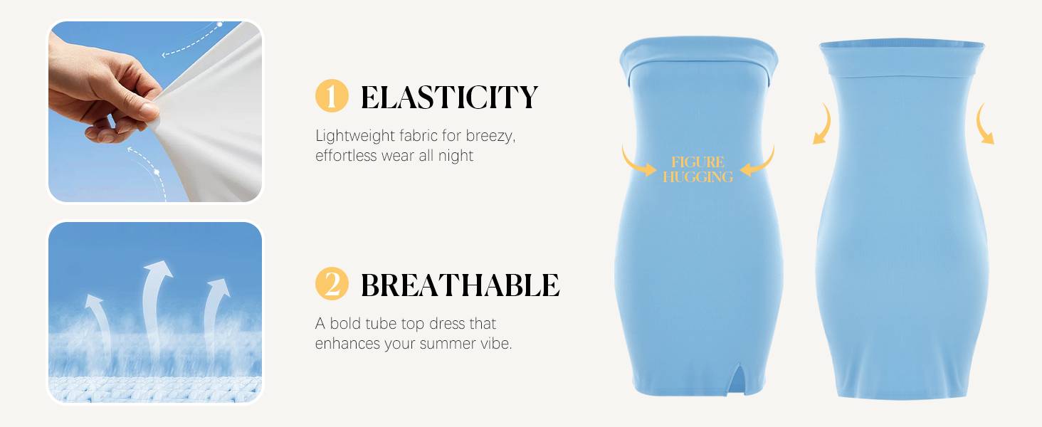 Comfortable Fabric: Made from soft and skin-friendly materials, this strapless off-the-shoulder dress ensures comfort throughout the night, allowing you to dance and enjoy without restriction.
