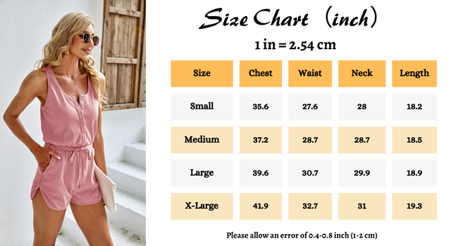 The design of this shorts one piece jumpsuit:solid jumpsuit,round or scoop neck, sleeveless short romper, adjustable drawstring waist, two side pockets, high elastic waist, u back, tank tops romper, short pants design, wide legs, loose fit, stretchy fabric, casual, lightweight, beach