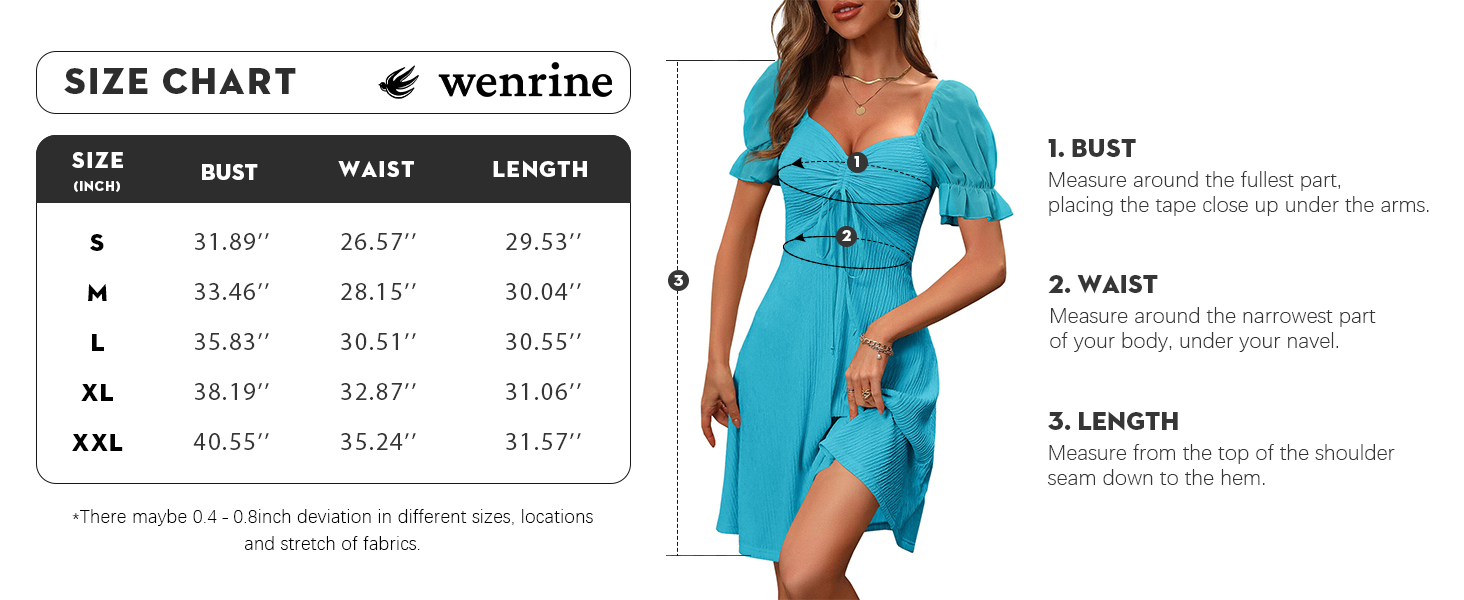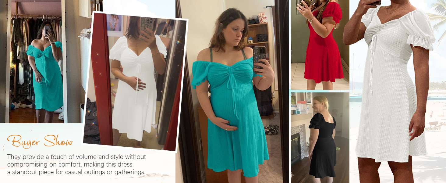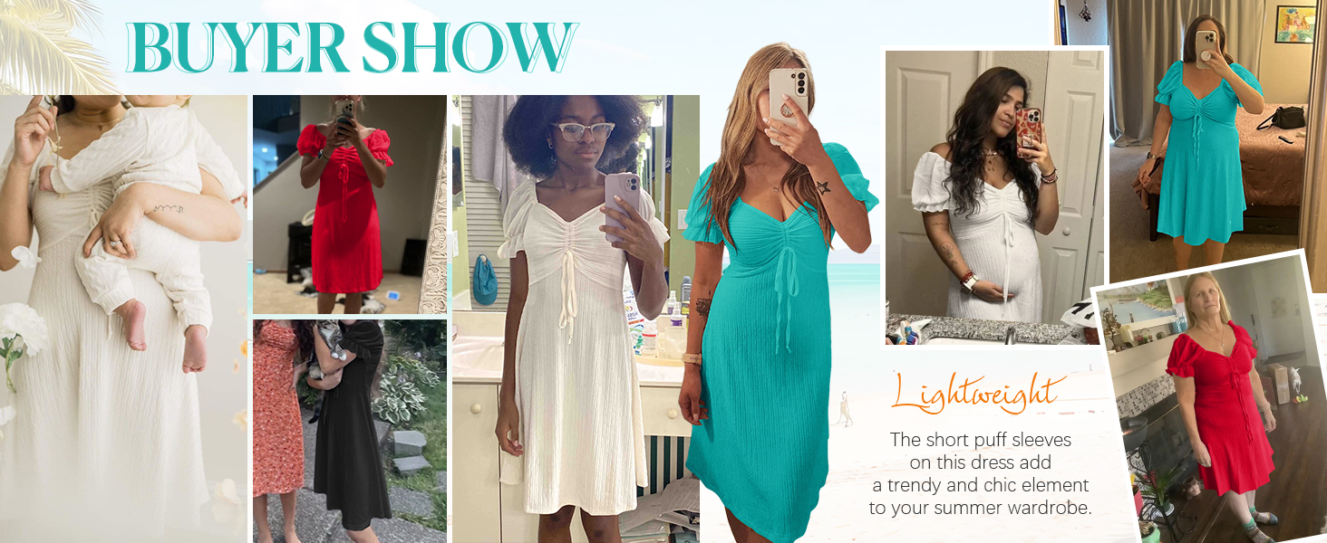 Short puff sleeves: The short puff sleeves on this dress add a trendy and chic element to your summer wardrobe. They provide a touch of volume and style without compromising on comfort, making this dress a standout piece for casual outings or gatherings.