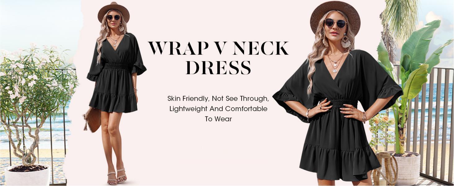 Feature: Cute dress, V neck dress, Beach dress, Sundress, Smocked waist dress, Mini dress, Sexy dress, Chiffon dress, Ruffle dress, A line dress, Wrap dress, High waist, Elastic waist