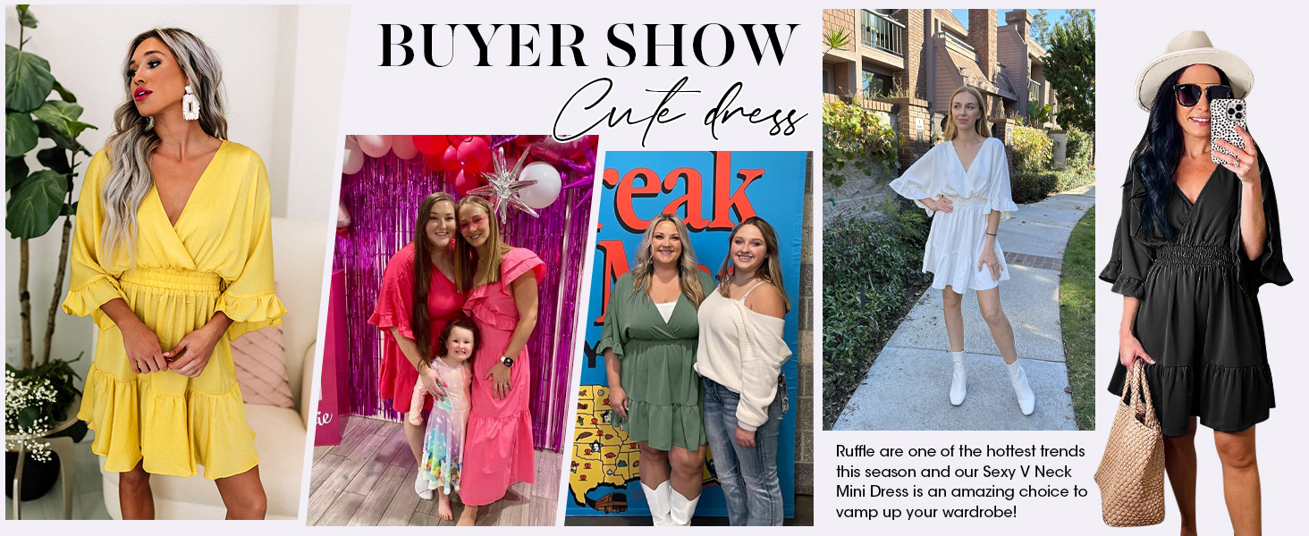 Match: Ruffle are one of the hottest trends this season and our Sexy V Neck Mini Dress is an amazing choice to vamp up your wardrobe! This dress features a mini-length and smocked waist detail for a cute combo. You can match it with your favorite accessories, and then match it with high heels, sandals, pumps, sneaker, etc., to make you look extraordinarily elegant and beautiful