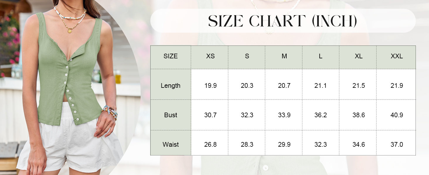 Matching: This button tank top is adaptable and may be worn with shorts, skirts, jeans, or sweatpants for a stylish summer look. It can also be used as an undershirt in the autumn and winter.
