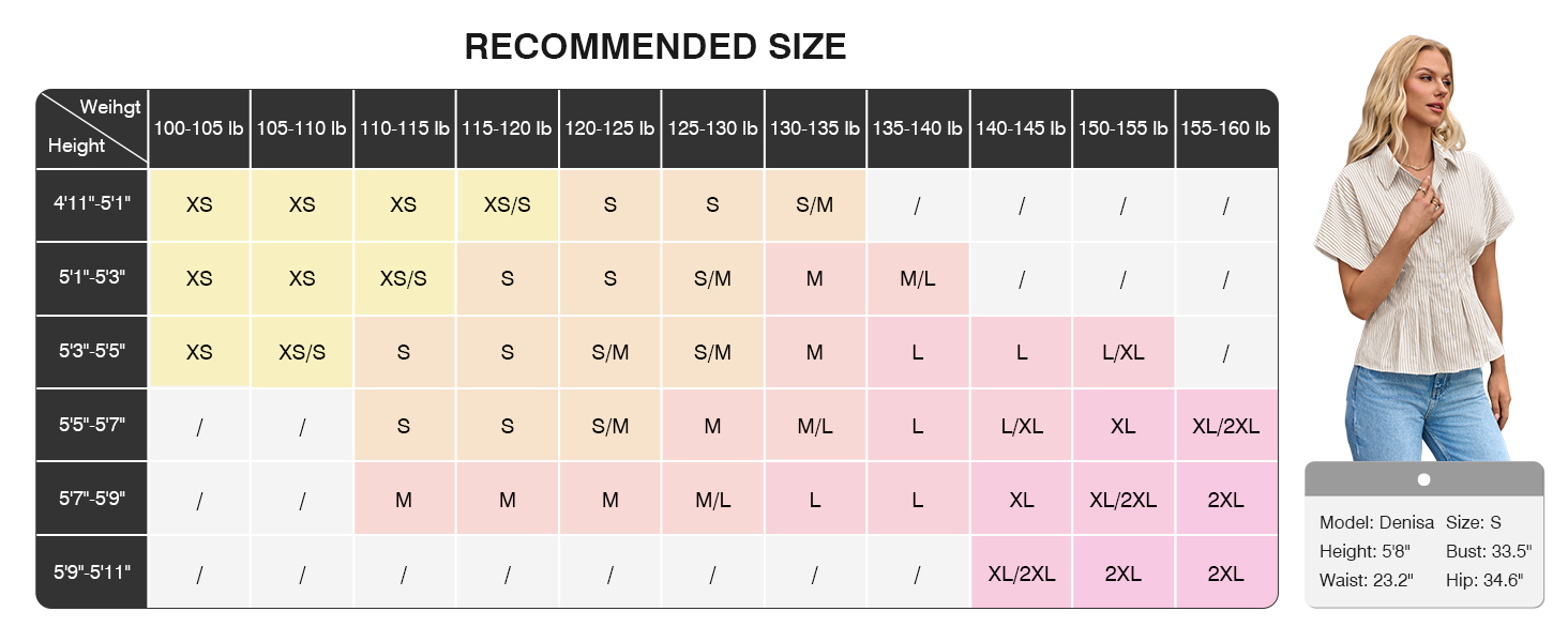 Features: Button down shirts, striped lapel collar blouses, pleated waist with peplum hem, batwing short sleeve, trendy casual tops for women.