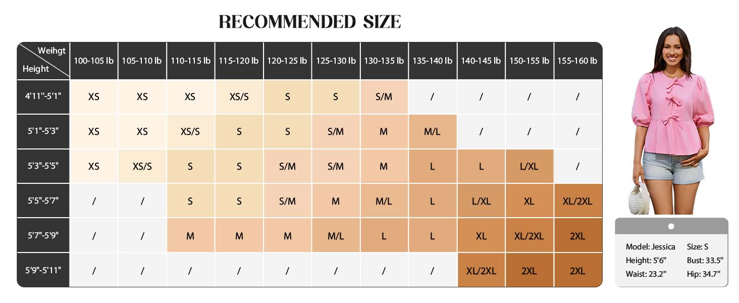 Unique Design: Womens summer peplum blouse is designed for a relaxed fit and features an open round neckline with tie closures at the front, ruffle hem and signature puff sleeves with elastic edges.Y2k peplum shirt for women, lantern short sleeve shirts, tie front cute tops, short puff sleeve loose fit blouse.